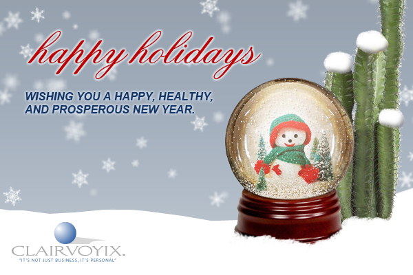 During this holiday season we are reminded of the importance of our personal and business relationships. All of us at Clairvoyix wish you and your family a healthy, happy, and prosperous New Year.